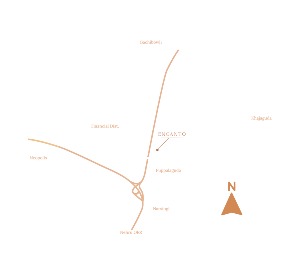 Ideally situated in the city’s power corridor, this location offers exceptional proximity to major work hubs like Waverock, Wipro Circle, and Neopolis within 10 minutes. Residents enjoy unparalleled connectivity with the Nehru ORR just 2 minutes away and the International Airport reachable in a 25-minute drive. The neighborhood is surrounded by world-class infrastructure, including elite institutions like Oakridge International School and top-tier medical facilities such as Apollo and Continental Hospitals, all within a 10-minute radius.
